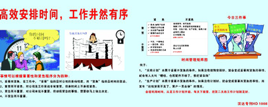 今年工廠的生意一直就很紅火,新老顧客訂單紛至沓來(lái),公司一向以先保障老客戶訂單時(shí)間為原則來(lái)處理,而滿足不了一些新顧客的訂單時(shí)間,這是一件很遺憾的事情。為了服務(wù)好新老顧客的需求,工廠自身也在進(jìn)行反省和改進(jìn)。 8月份的黑板報(bào)主題就是:高效安排時(shí)間,工作井井然有序。相信隨著工廠管理水平的提升,員工時(shí)間觀念的加強(qiáng),生產(chǎn)效率能夠得到逐步得提升,來(lái)滿足到更多顧客的需求。事情按重要性和緊急程度可以分為: 1,重要而緊急