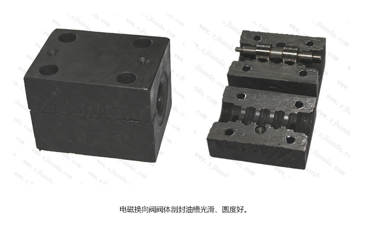 4,電磁換向閥對(duì)閥體的光潔度、圓度、同心度要求高,如下閥體剖切圖中封油槽光滑、圓度好。