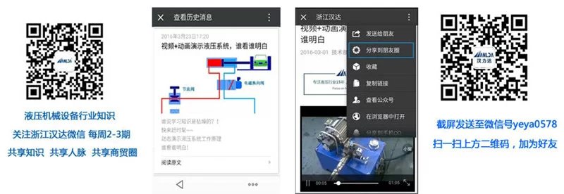 關注浙江漢達公眾號(微信號:zjhanda,下圖左邊二維碼)分享此文章微信版到您的朋友圈,并截屏發(fā)給微信號yeya0578(下圖右邊二維碼),即可入微信群《漢達班液壓系統(tǒng)學習分享群二》(《漢達班液壓系統(tǒng)學習分享群一》已滿員)